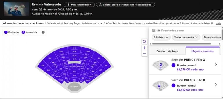 La venta de boletos dio inicio este 30 de enero a través del sitio web de Ticketmaster. Los precios varían según la zona elegida, desde las áreas más cercanas al escenario hasta las secciones más alejadas, garantizando opciones para todos los gustos y presupuestos.